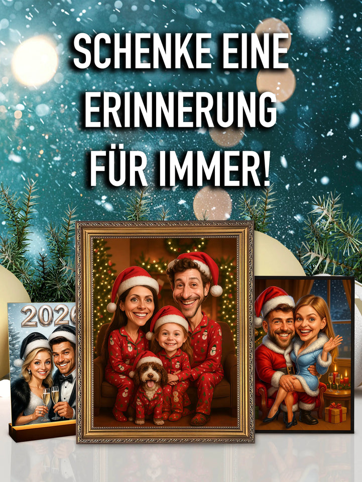 Weihnachtself - Druck auf Glas, Porträt aus deinem Foto